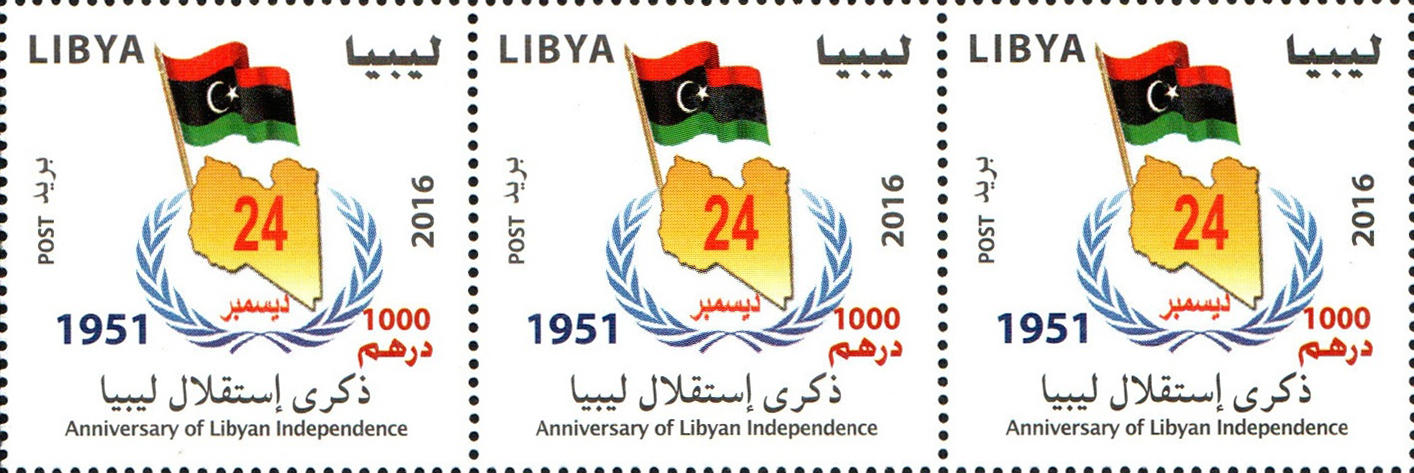 Release Name: The 65th Anniversary of Libya’s Independence Release date: 2016-12-24 Category: 500 dirhams Number of stamps in the sheet: 30 Stamp Size: 40x40mm Designer Name: Abdel Baset Abu Qurain