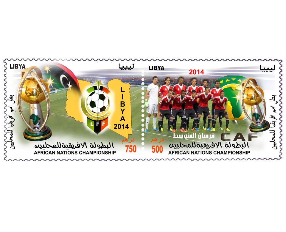 اسم الاصدار: بطولة الامم الافريقية للمحليين لكرة القدم تاريخ الاصدار: 2014-02-17 الفئة: 500+750 درهم عدد الطوابع في الشيت: 14×2 مقاس الطابع: 52×37 مم اسم المصمم: فرحات محمد فرحات – خالد الطباخ