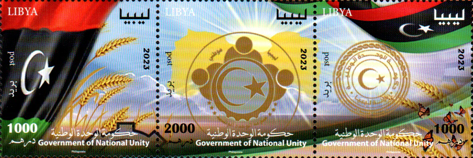 اسم الاصدار: حكومة الوحدة الوطنية تاريخ الاصدار: 2023-06-19 الفئة: 1000+2000+1000 درهم عدد الطوابع في الشيت: 10×3 مقاس الطابع: 40×40 مم اسم المصمم: فرحات محمد فرحات